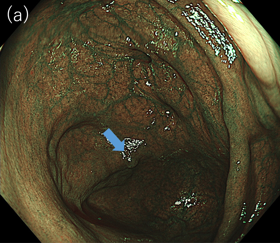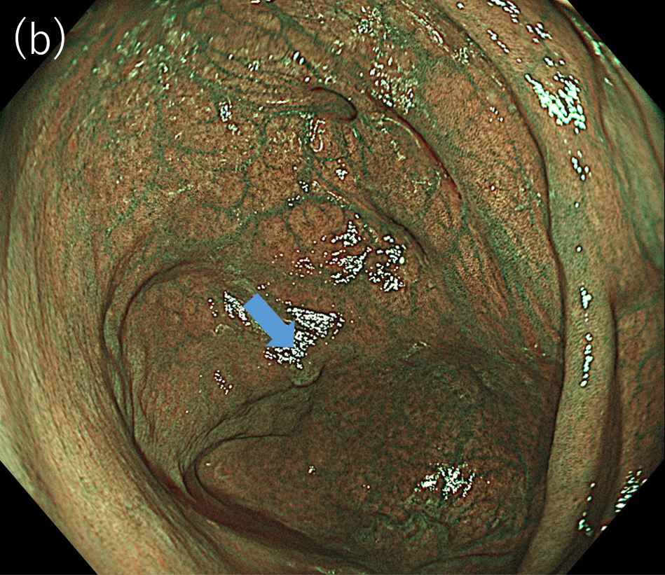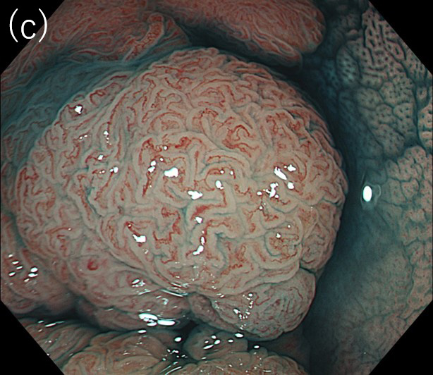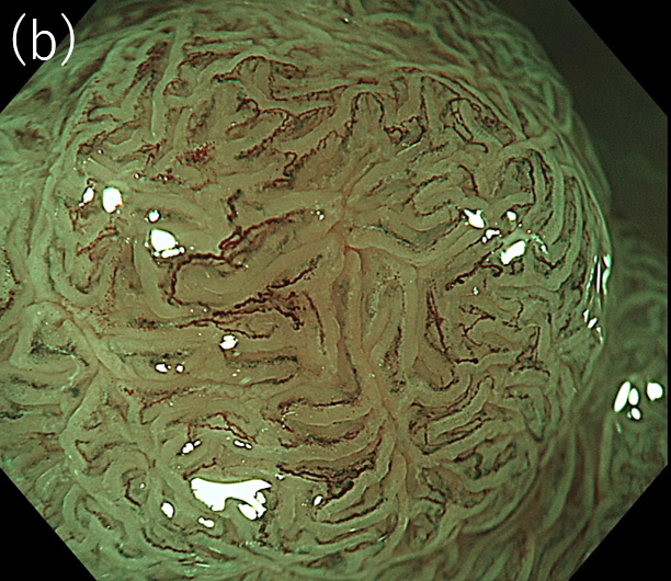 (b)NBI拡大観察像(JNET分類:Type 2A)