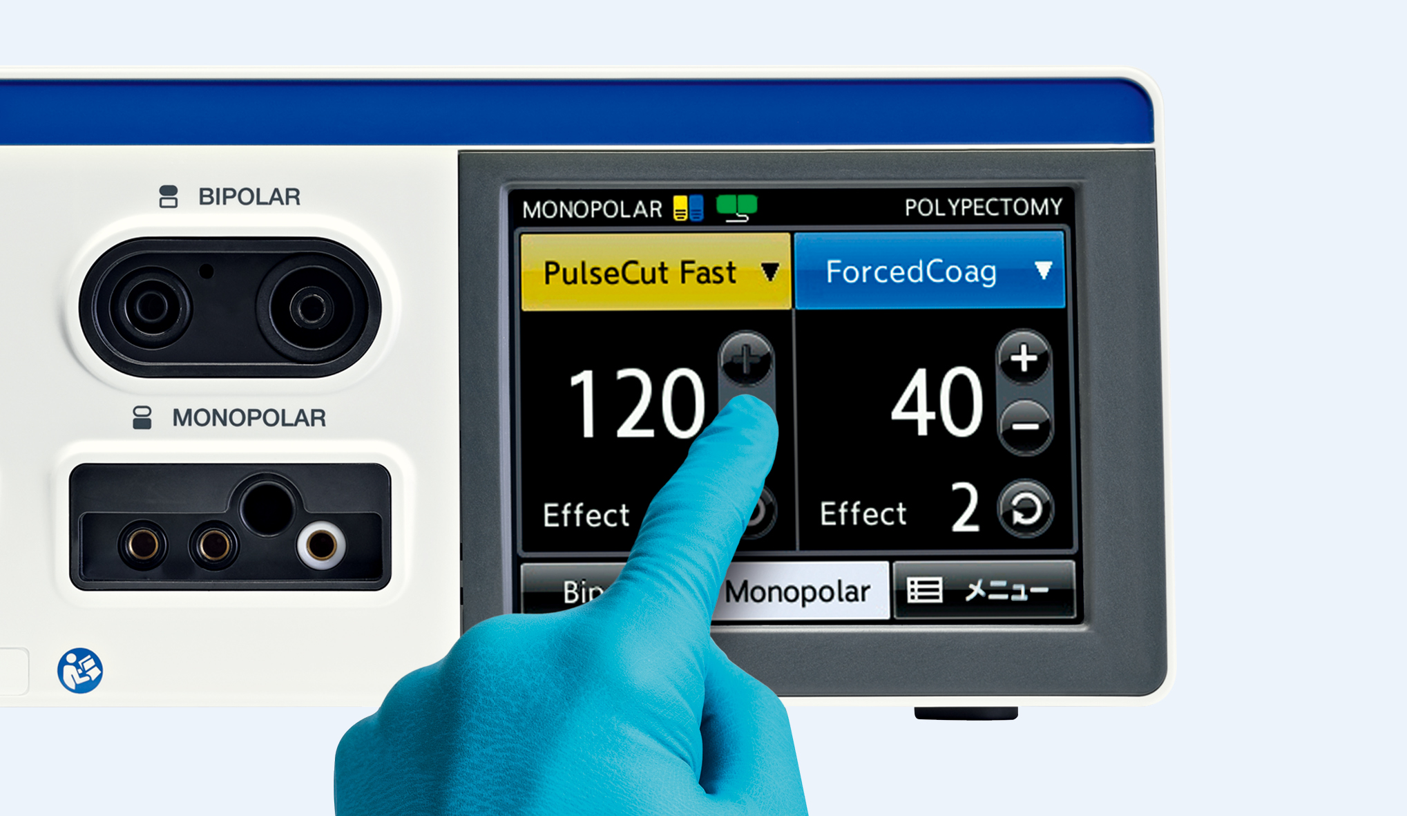多様化する手技やデバイスに応じてさまざまなモードが選択可能です。出力とエフェクトを調整することで、さまざまなシーンに対応し、安定した内視鏡治療をサポートします。