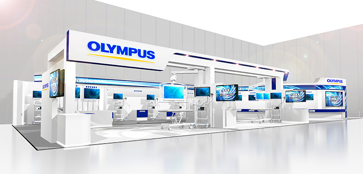 オリンパス展示ブースでは、新製品を中心に診断から治療までのさまざまなラインアップを展示しております。