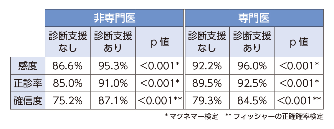 表 EndoBRAIN-Xの支援参照による診断精度の変化