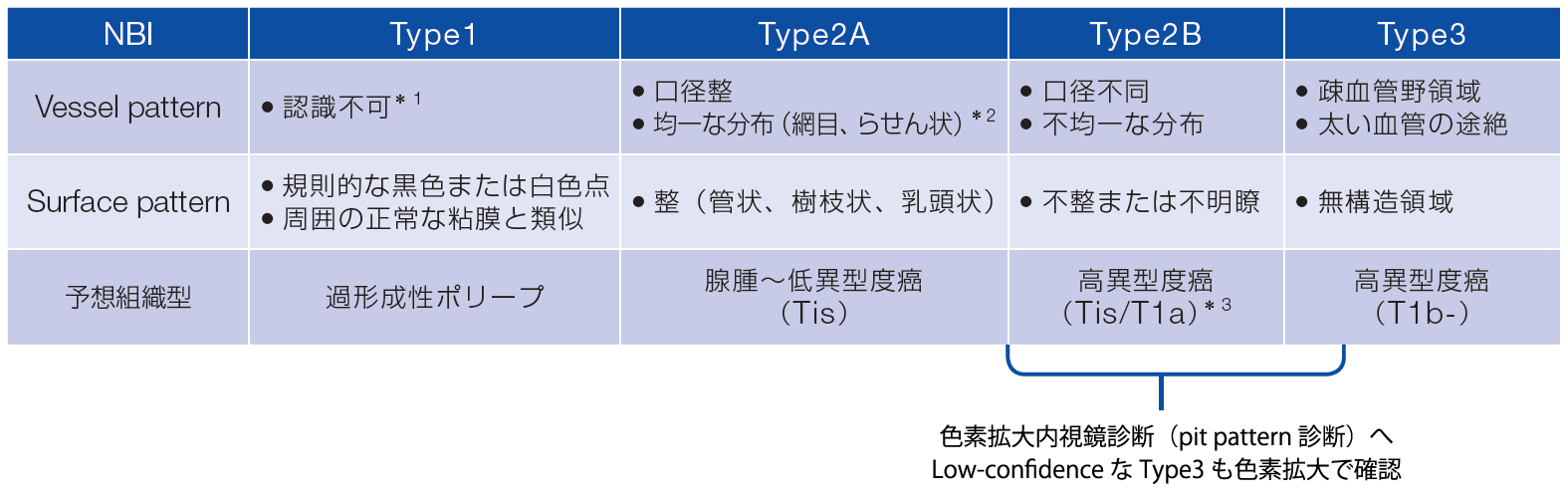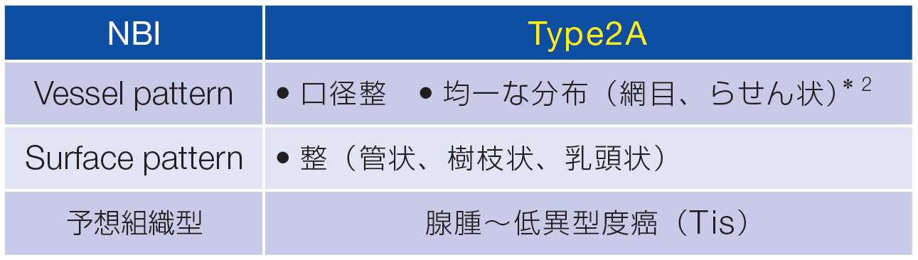 * 2. 陥凹型については、微細血管が点状に分布されることが多く、整った網目・らせん状血管が観察されないこともある