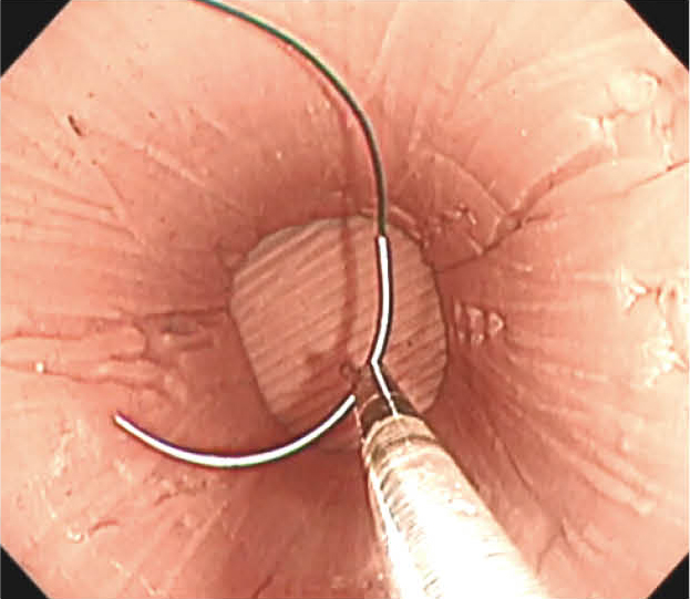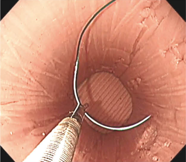ディスポーザブル持針器を用いた内視鏡的手縫い縫合法
