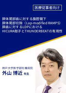 THUNDERBEAT TypeSと手術用鉗子HICURAを使用した腹腔鏡下膵体尾部切除の手術手技ならびに製品の適正使用についてご解説頂いております。
