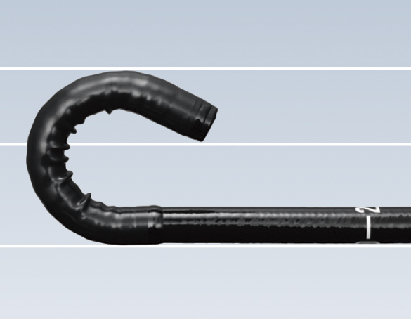 先端部の加工は挿通抵抗を軽減し、カップの噛み合わせのズレや 外観のバリを最小限に抑えた設計で、スコープにとって愛護的な構造になっています。シースは柔らかくしなやかな素材を採用しているため、挿入時のスコープへの影響を軽減し、アングルをかけた状態で挿入してもアングル戻りが発生しにくい設計としました。