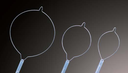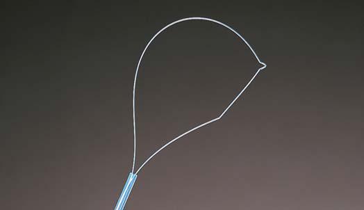 透明キャップを用いた粘膜切除術に最適です。半月型のループ形状がキャップへのプレルーピングを容易にします。