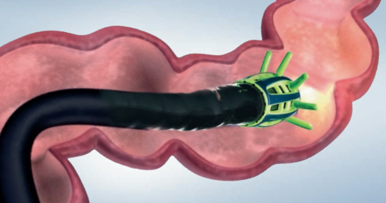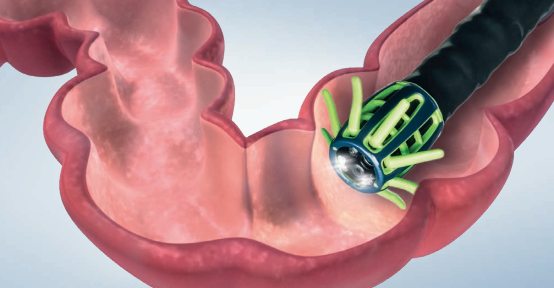 拡がったアームが粘膜のひだを平らにすることで、これまで困難だった粘膜の観察をサポートします。