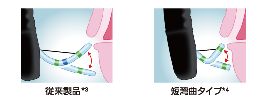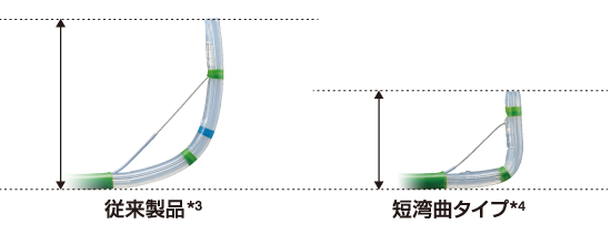 WGC*の近接時にカテーテル方向精度を向上させる短湾曲タイプ