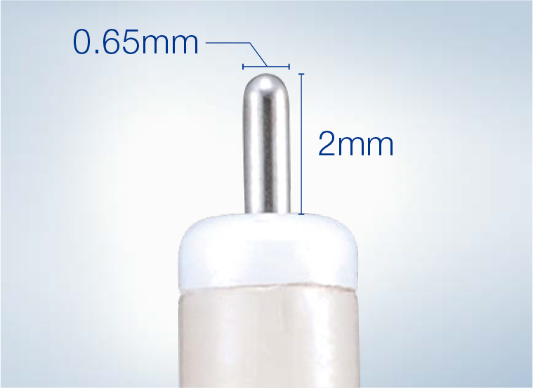 ナイフ突出長を2.0mm、ナイフ外径を0.65mmに設計。
