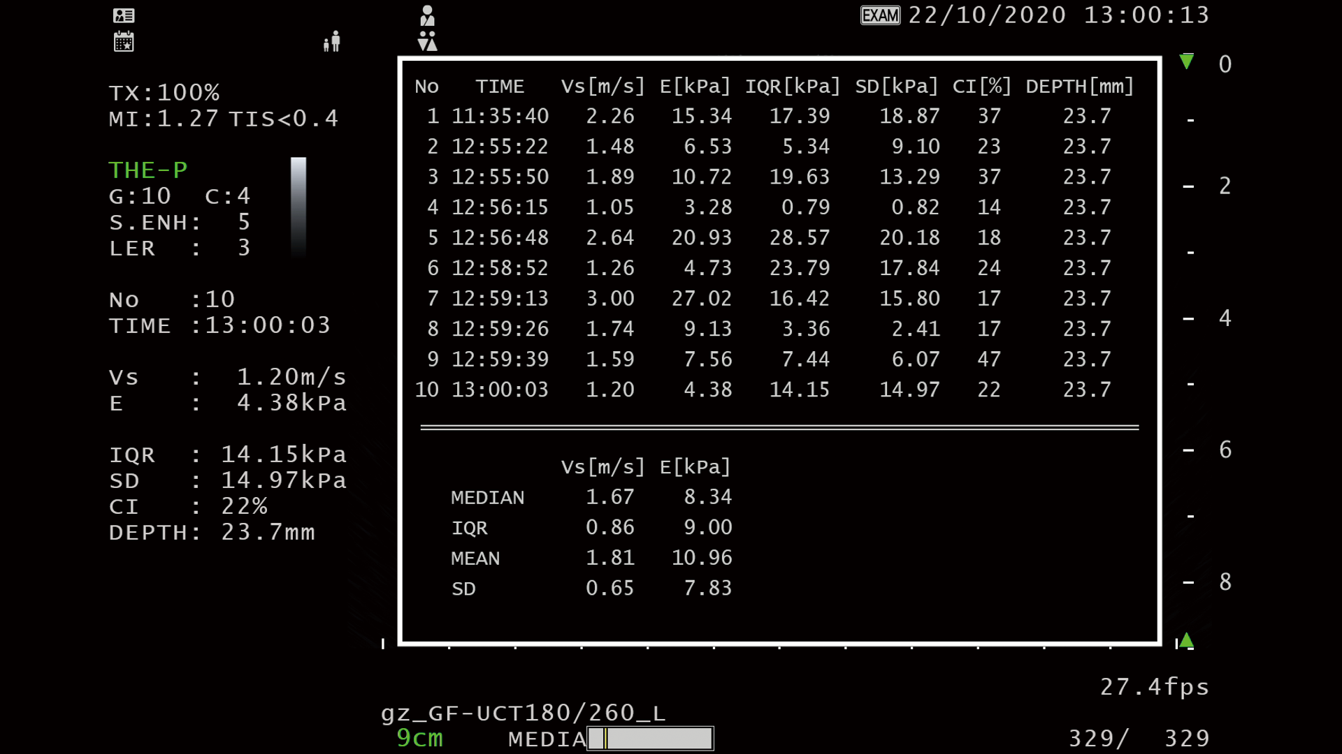 SWQ(ソフトウェアオプション) | ROIで指定した範囲のせん断波の伝搬速度、および弾性率の計測・表示が可能 | ||