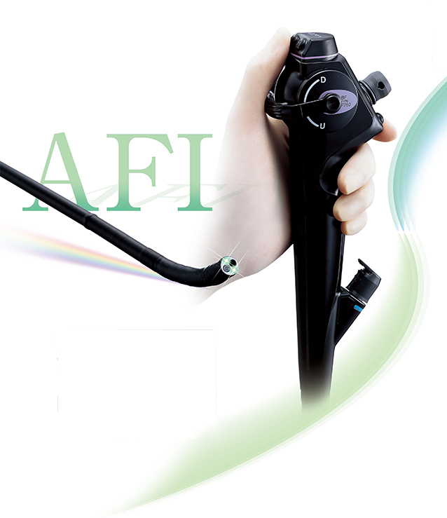 通常光観察とAFI(蛍光観察)がワンタッチで切り換え可能。*