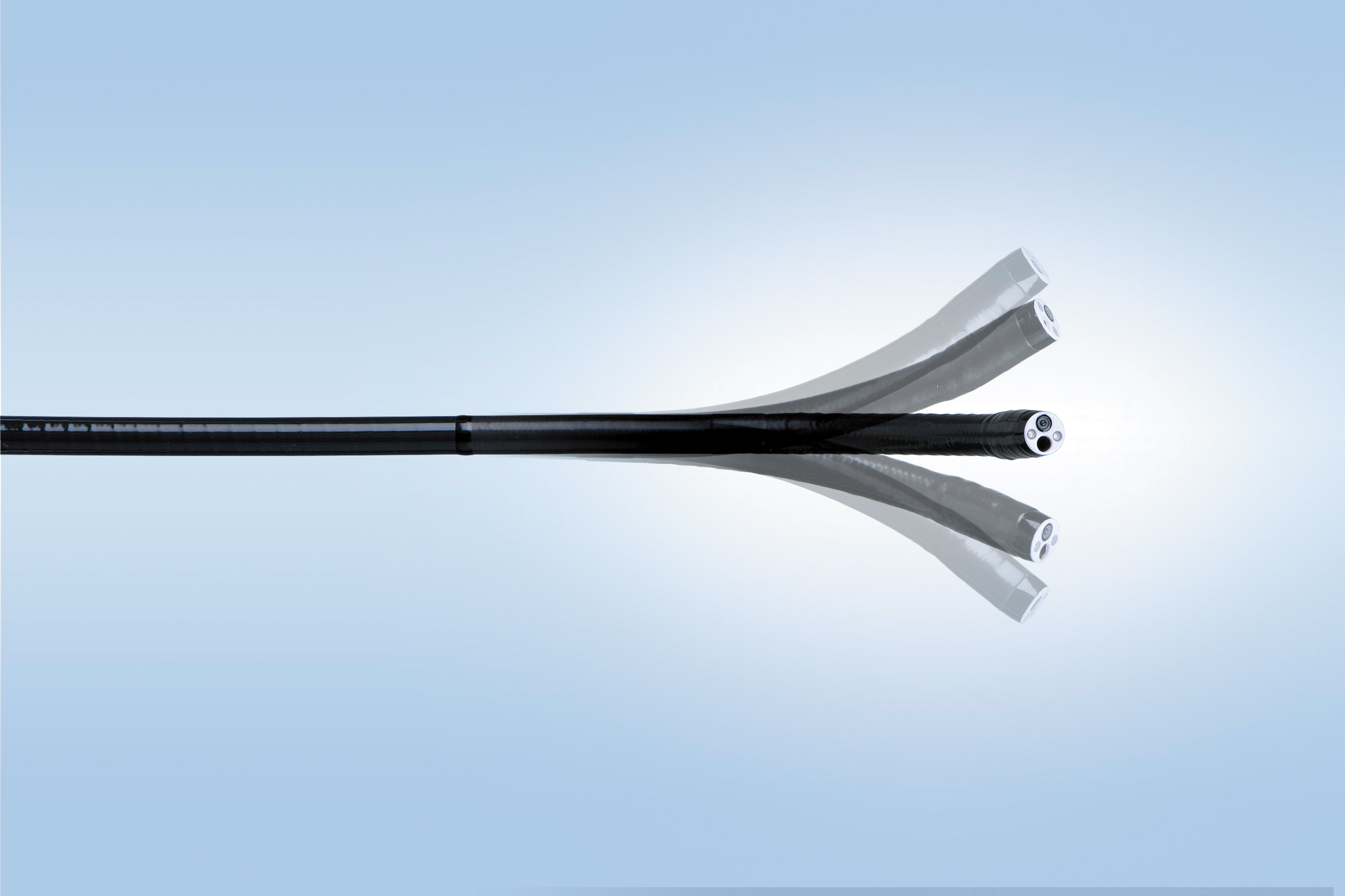 -              挿入部回転機能スコープ操作部のリングを回すだけで、挿入部を左右に最大120°まで回転させることができます。不自然な姿勢によるストレスを和らげ、より簡単な操作とスムーズな挿入をサポートします。