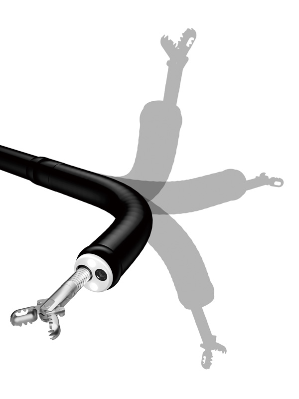 従来の径をそのままに、ENF-VT3は鼻咽喉ビデオスコープとして世界で初めて*4方向湾曲を実現しました。従来のUp/Down 130°湾曲に加えて、Right/Left 70°湾曲を追加し、病変へのアプローチ性の大幅な改善に貢献します。また、4方向湾曲は片手で操作ができるため、もう一方の手でその他の処置具操作が可能となります。