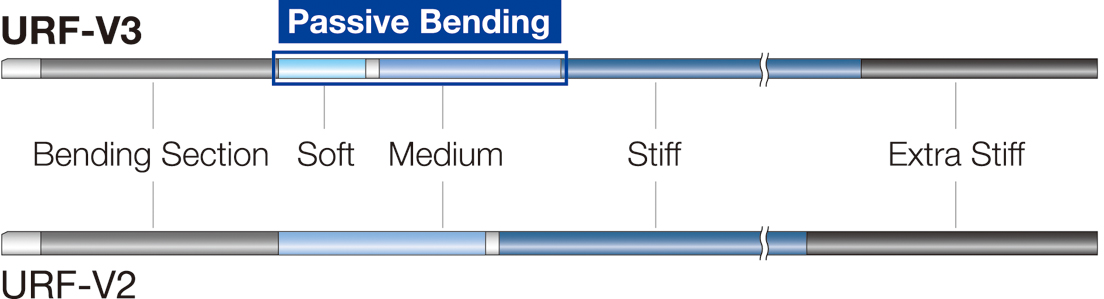 URF-V3は、挿入部の硬度を4段階に分ける独自の構造“DuraBend”を採用しています。