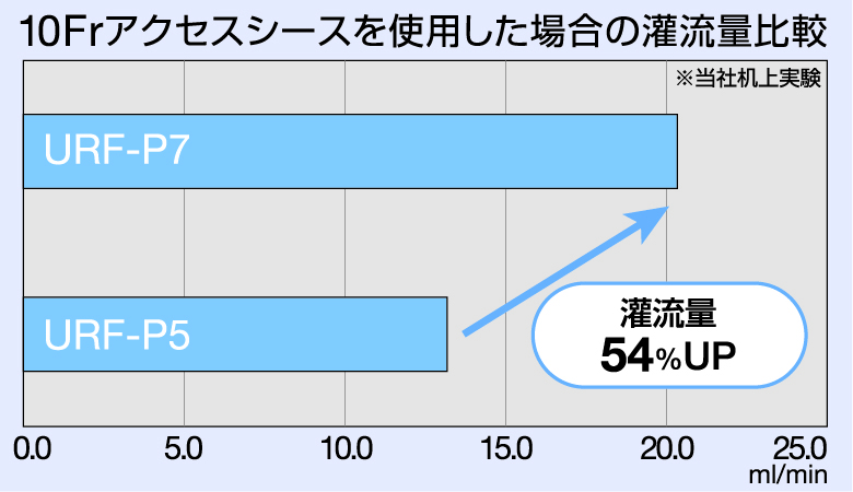 7.95Frの超細径挿入部により、内径が細いアクセスシースを使用した場合でも灌流量を確保でき、結石破砕時や出血時などの場面においても、良好な観察画像の維持に貢献します。