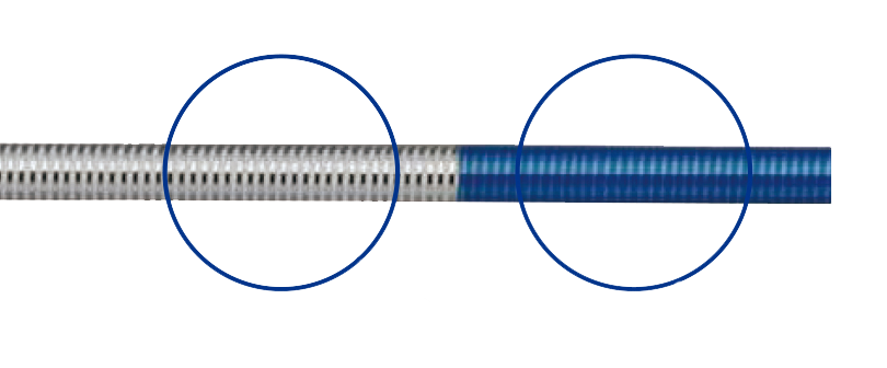 新たに、柔軟なセクションを設けたことにより、狭い腎・尿管内での操作時に、湾曲管に過度な力が掛かることを防ぎます。 -