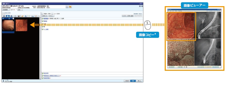 - ・一定期間後はPACSからWeb経由で画像を取り込んでレポート添付できます。