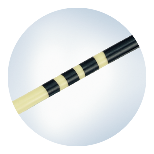 (ステント後端)巻き始めの位置を内視鏡的に視認しやすい縞模様のマーカーを付与。