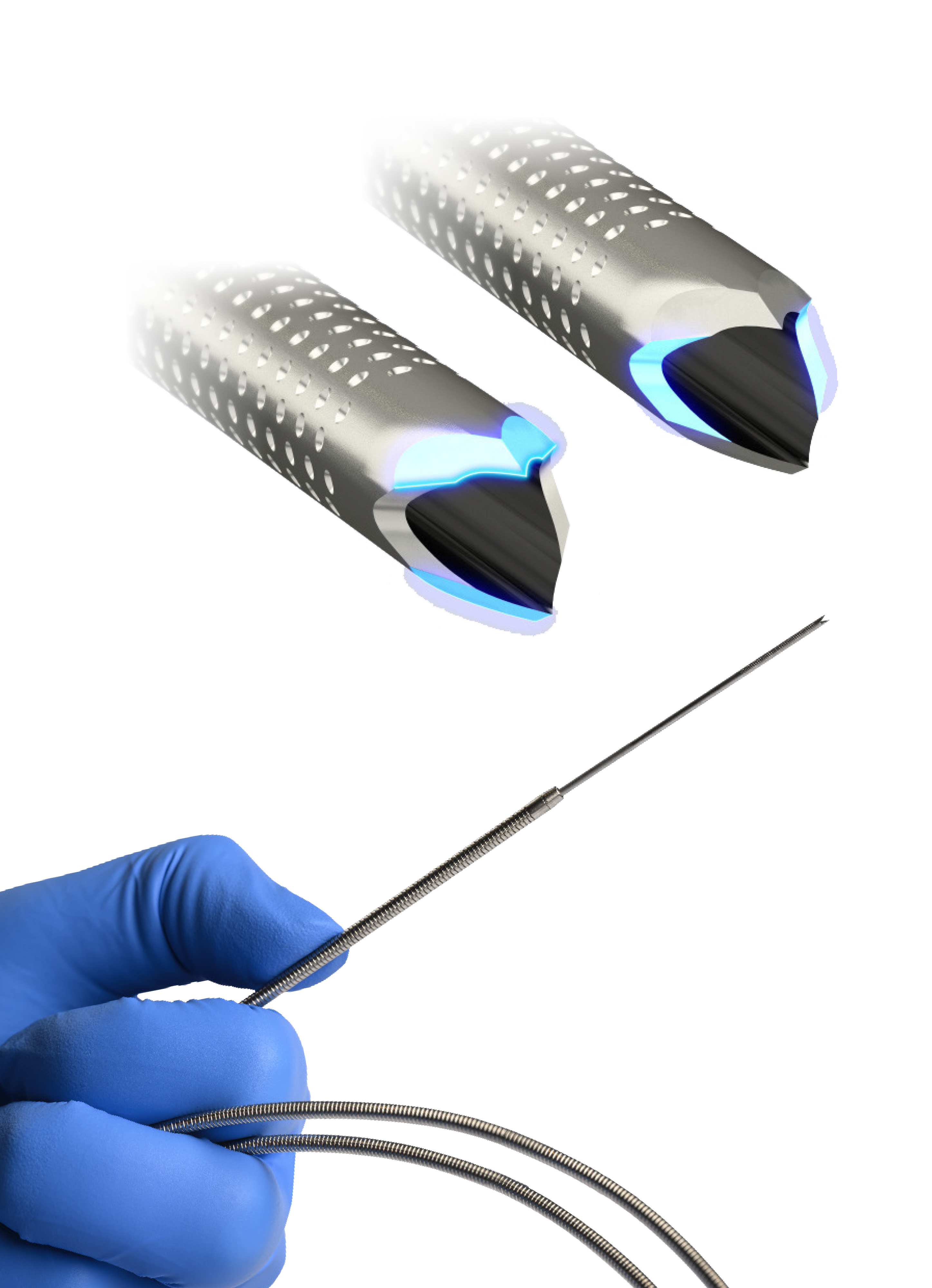 外側の刃面が鋭利な先端を形成し、スムーズな穿刺 をサポートします。内側の刃面は、針の外側に漏れ 出てしまう検体を最小限に抑え、効率的な検体採取 をサポートします。 内側の刃面は、組織を針の内腔に誘導することで、効率的な検体採取をサポートします。これらの多角的なカットを施した針先が、組織検体をきれいに切り取り、組織を傷つけず細胞構造を保ちながら、より多くの組織サンプルを採取します。¹