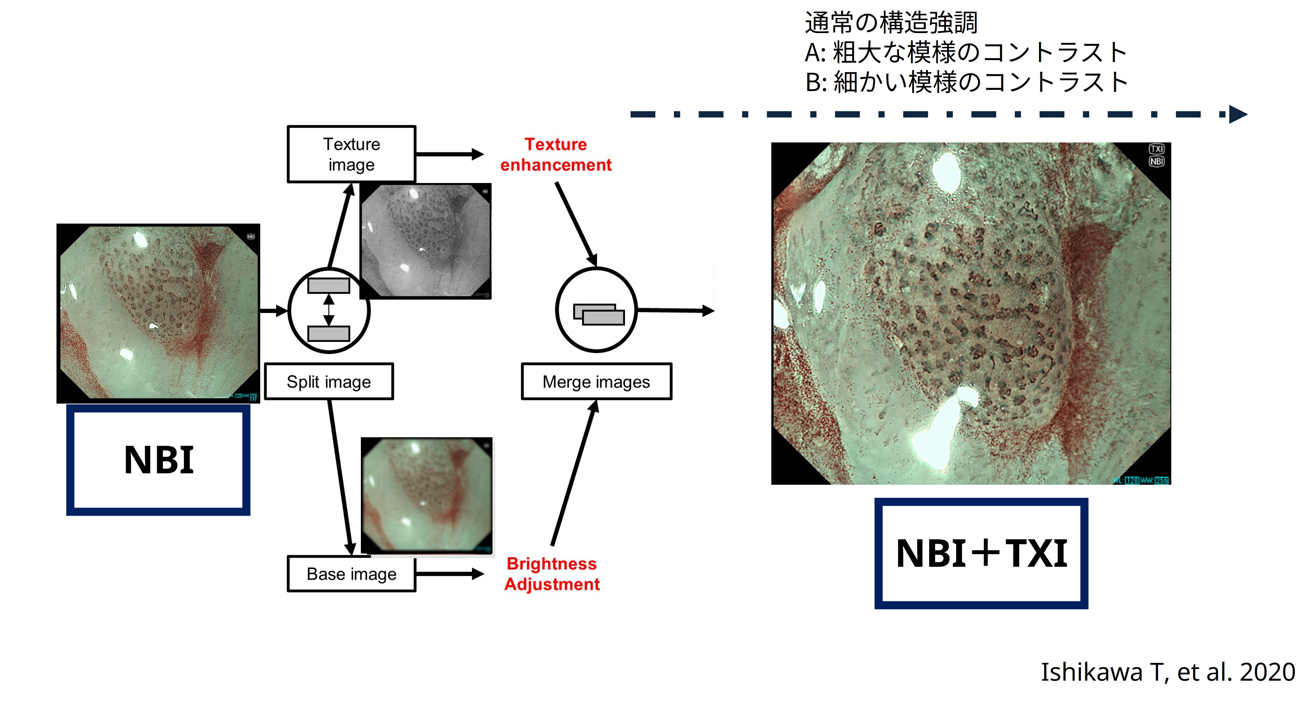 TXIでの入力画像がNBIで得られた画像となり、TXI mode2の画像強調技術が適応される。