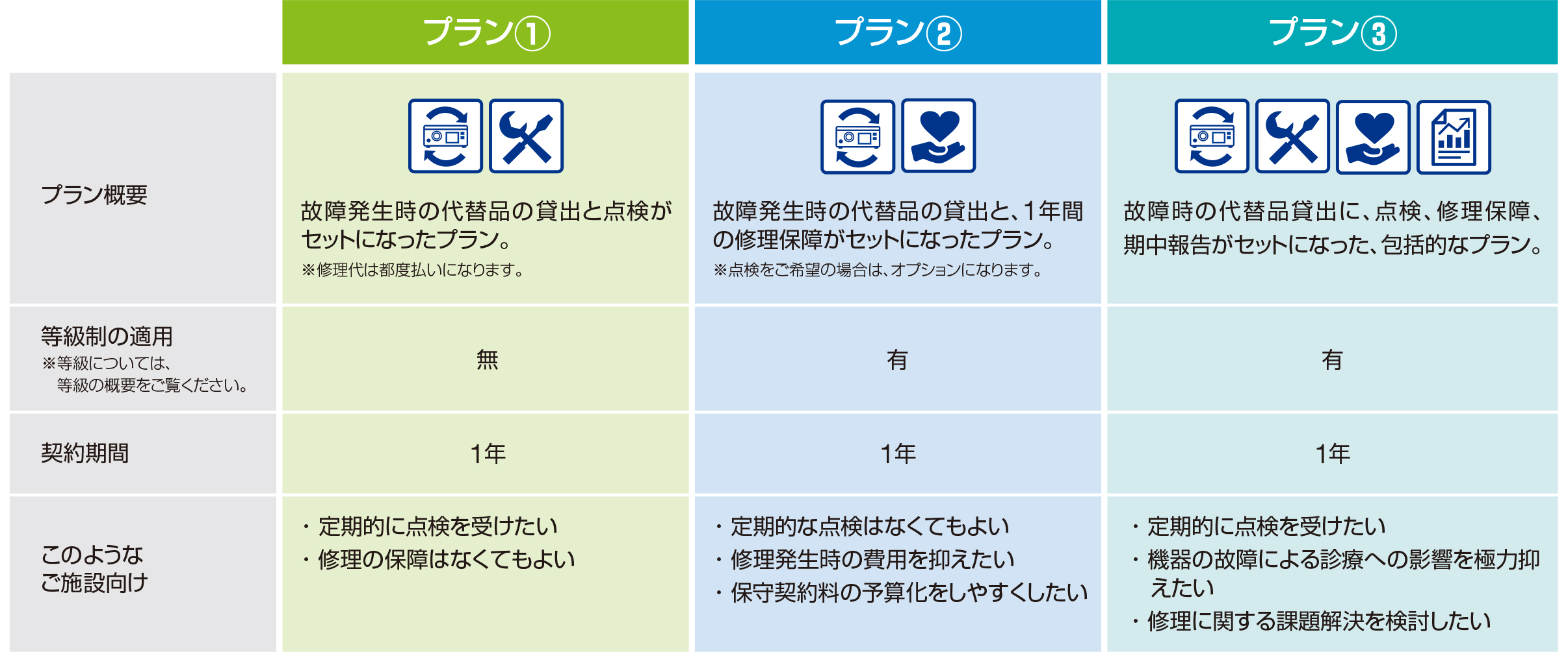・故障時に代替機器貸出しの優先手配が受けられ、検査の中断や延期のリスクを低くする助けになります。